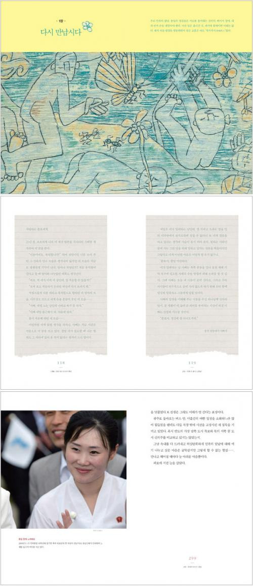 그래도 우린 다시 만나야 한다. 통일부 공무원이 수십년동안 북한과의 공적인 일을 해오면서 만나왔는 북한 사람들과의 만남을 그린 이야기. 이산가족 상봉은 물론 개성공단이 들어서기 이전의 조율문제와 북한 용천역 폭발사고등 여러가지 공적인 일을 하면서 연락관으로 일하여 북한 사람들을 가까이 보고 지냈던 이야기를 사실감 있게 쓴 내용이다. 나는 북한의 외교적 방법이 이해 안되고 하는 짓 보면 꼴보기 싫지만 통일을 지지하는 사람중 한 사람이다. 물론 민주주의 국가로. 북한은 싫지만 한 민족인 사람들이 코딱지만한 나라에 둘로 갈려 오도가도 못하는 휴전상황에 있다는것이안타깝고 우리나라가 더욱 발전하는데 걸림돌이 되는것 같아 하루라도 빨리 통일이 되길 바란다. 이 책을 보고 더욱 통일을 생각하게 되었다. 부모와 자식이 생이별을 하여 수십년동안 생사도 모른채 서로 그리워만 하다 다 늙어 죽기전에 겨우 잠깐 보는 안타까운 상황.. 꽃다운 나이에 마지막으로 보고는 정말 늙어 죽기전에 다시 만난 노 부부. 헤어지기전 손을 놓지 못하고 서로를 바라보며 눈물을 흘리는 장면은 지금 생각해도 눈물이 핑 돈다. 2002년 부산 아시안게임에서 한반도기를 들고 동시 입장하는 코리아이야기. 글쓴이는 그때 당시도 북한측과 최측에서 의사소통을 하는 연락관이었다. 컵라면에 푹빠져 있던 체조선수. 남측 남자 선수들은 운동에 관심없고 연애에만 관심있다던 북한 여자 축구선수들.. 재밌는 이야기를 보는 중에도 한쪽 가슴이 찡하고 안타까운 마음이 컸다. 같은 모습을 하고 있고, 같은 말을 하고 있는데도 툭 터놓고 이야기도 제대로 못하는 현실. 불과 반세기 좀 넘는 시간 전에는 같은 땅에서 같은 역사를 가지고 같이 살던 사람들이 자의던 타의던 둘로 갈라져 이렇게 지내는 상황이 정말 슬프기만 하다. 이 책 속의 어느 한 인물은 남한에게 적대적인 북한에게 쌀을 지원하는것에 대해 못마땅해 했지만 북한 주민들의 빈곤과 먹을것 하나에 행복해하는 북한 사람들을 가까이서 보고는 마음이 변했다. 아마 모두들 그러리라. 북한이라는 나라는 싫을수도 그 안에 살고 있는 주민들은 무슨 잘못.. 이책을 다양한 연령층이 보아도 좋은것 같다란 생각을 하며 마지막 페이지를 덮었다. 몰랐던 북한에 대한 일들이나 궁금했던 점들을 어느정도 알 수 있고 북한 사람들에 대해 빨갱이가 아닌 같은 한민족으로서의 무언가를 느끼게 해주었기 때문이다.